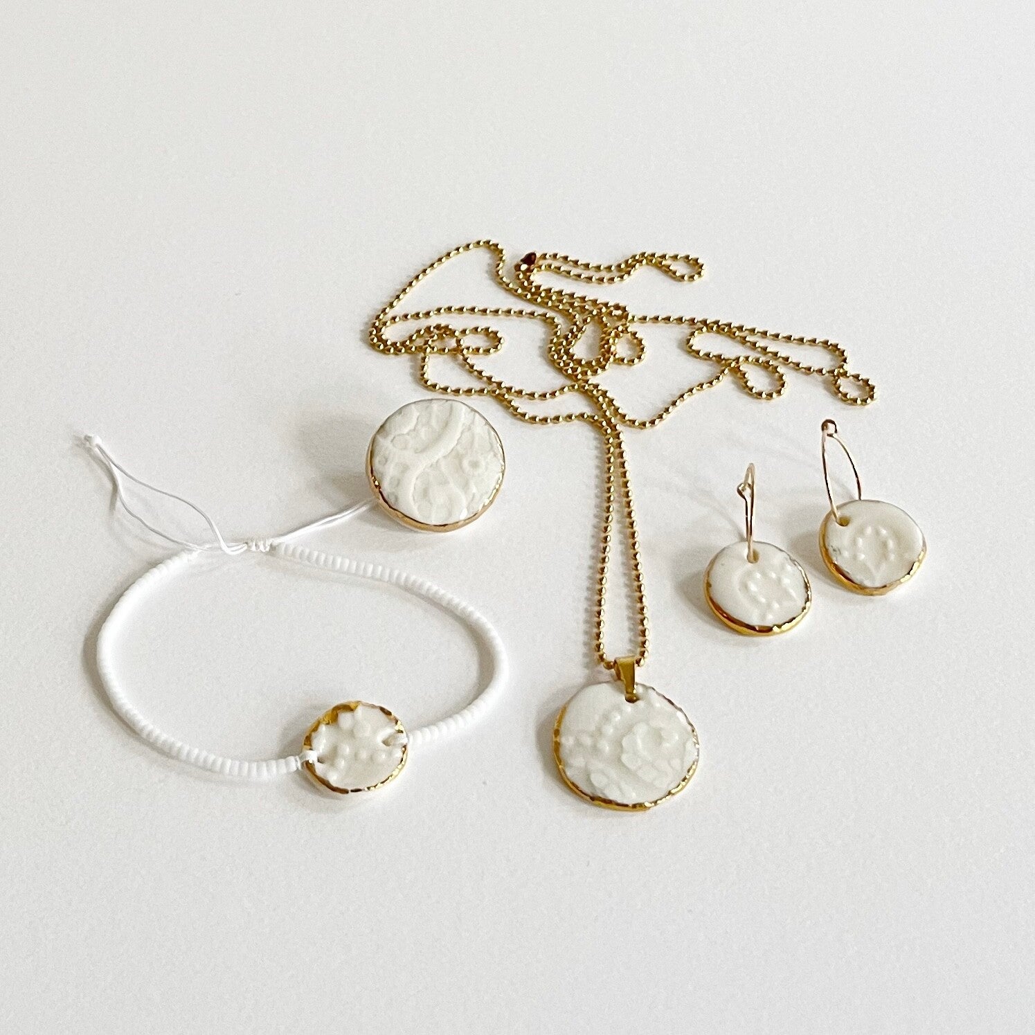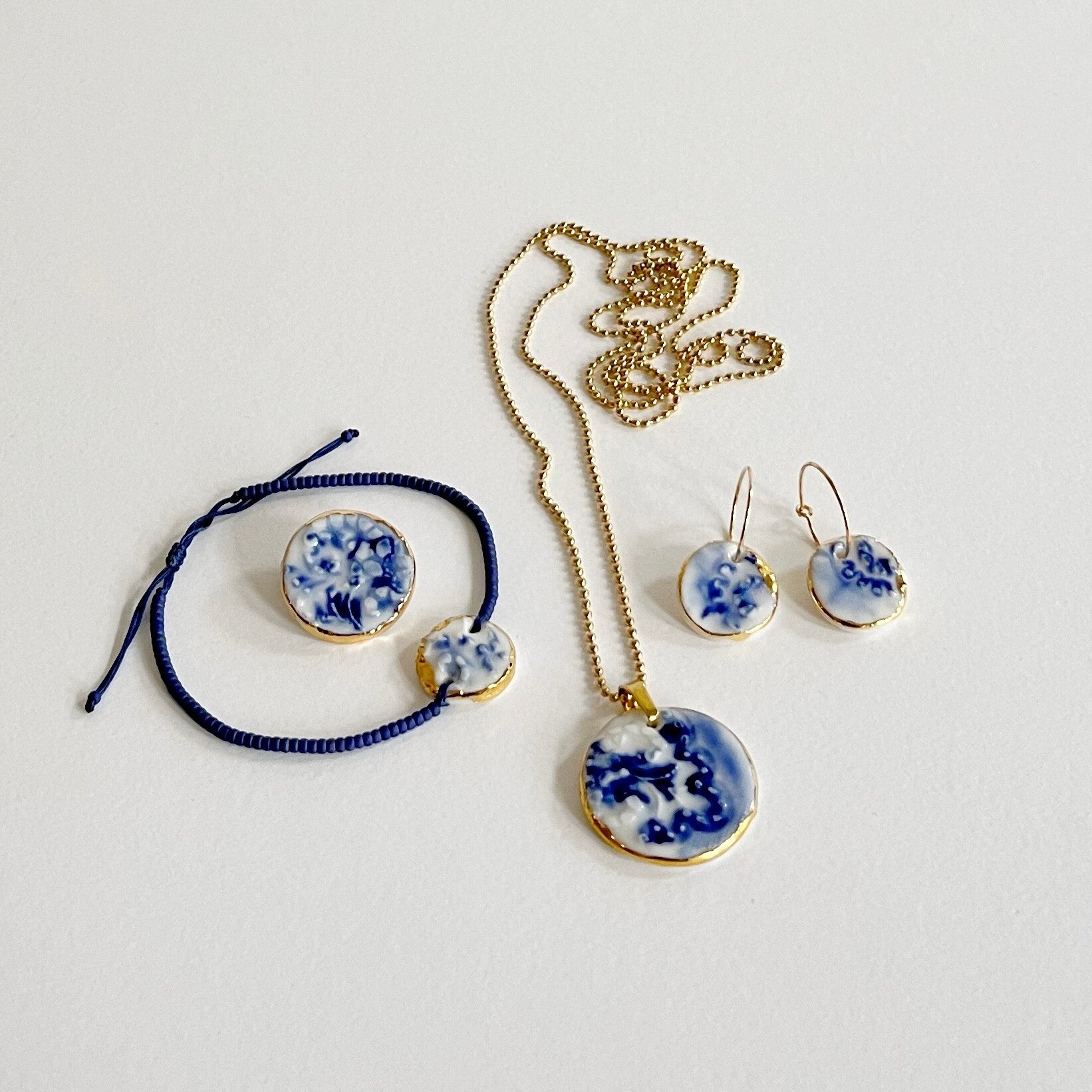 Armband: Myuki kralen met porselein en verstelbare schuifknoop.